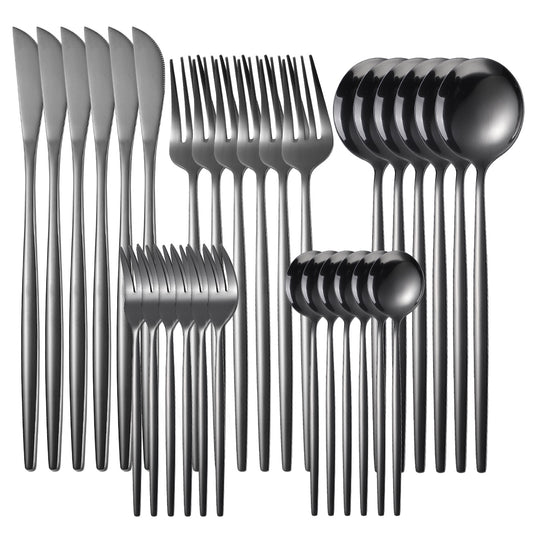 24Pcs Black Handle Golden Stainless Steel Cutlery Set