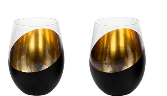 Set Of 2 Stemless Wine Glasses in Gold or Black