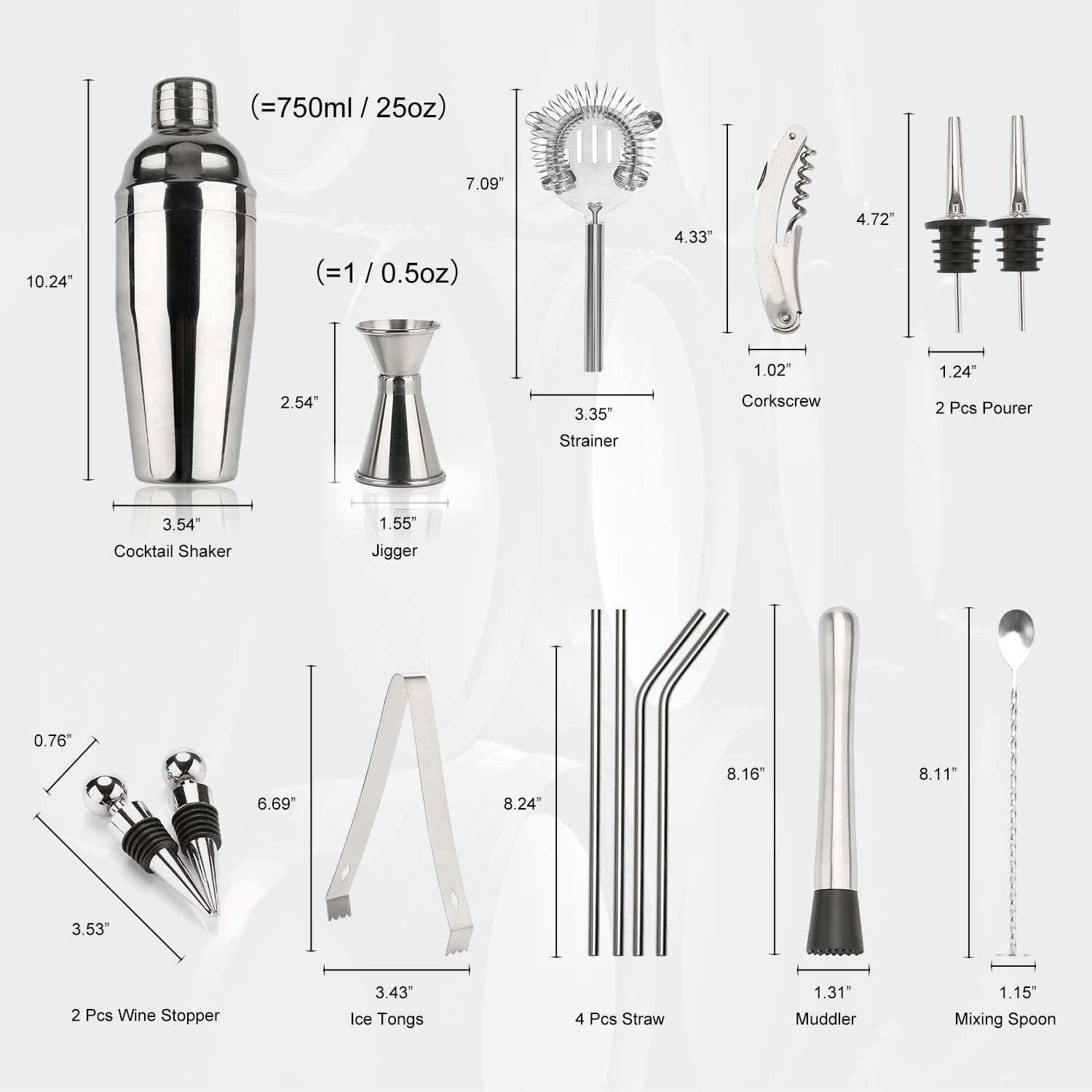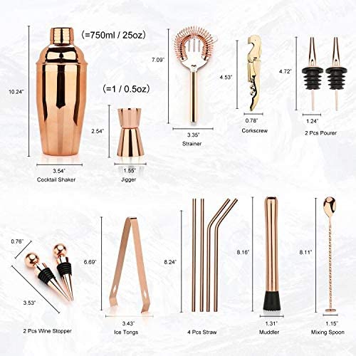 Our Bartender Kit is made of food-grade stainless steel that is known to be long-lasting, lightweight, and resistant to rust, dents, and scratches. It is safe for drinkers and won’t affect the taste. Also, the shaker features a mirror finish craft that is beautiful and fashionable. All parts of this bar set are dishwasher friendly for quick and easy cleaning.