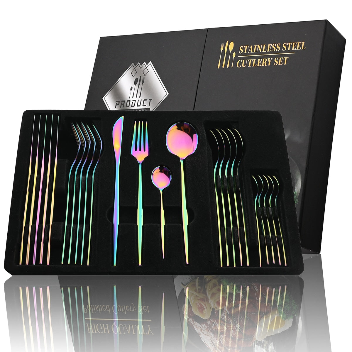Our Stainless Steel Cutlery Set Features a modern design of the highest quality. Provides the right smart appearance on the table. Suitable for all kinds of dining. easy to wash, your proper care can make this utensil set always looks as good as new, and enable it to last for many many years.