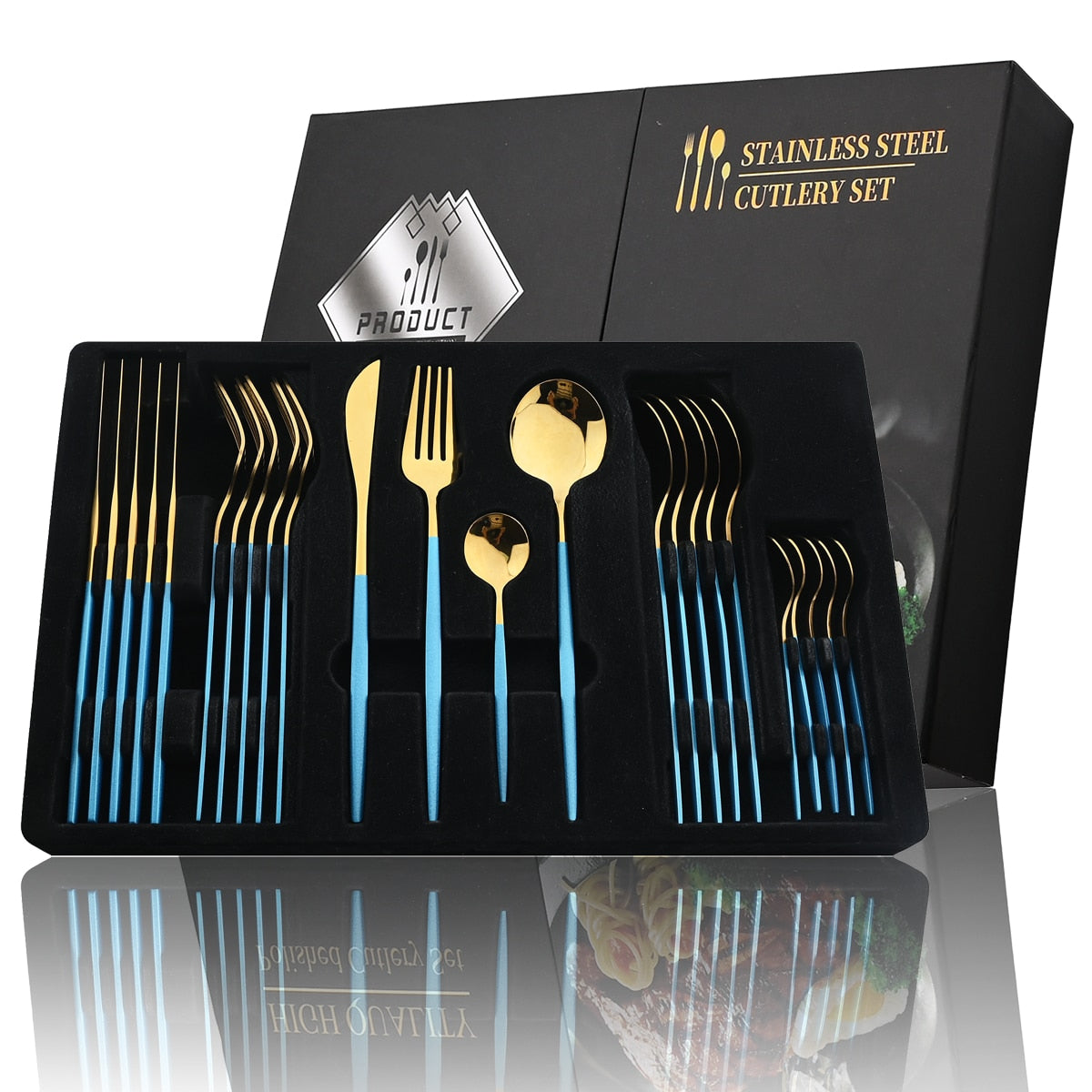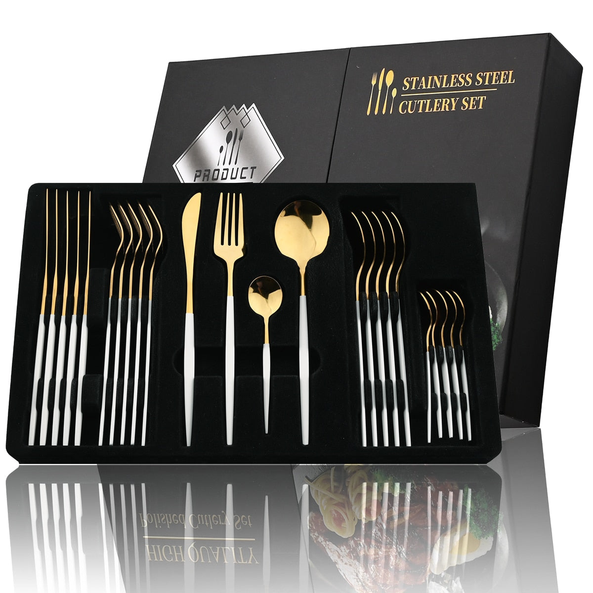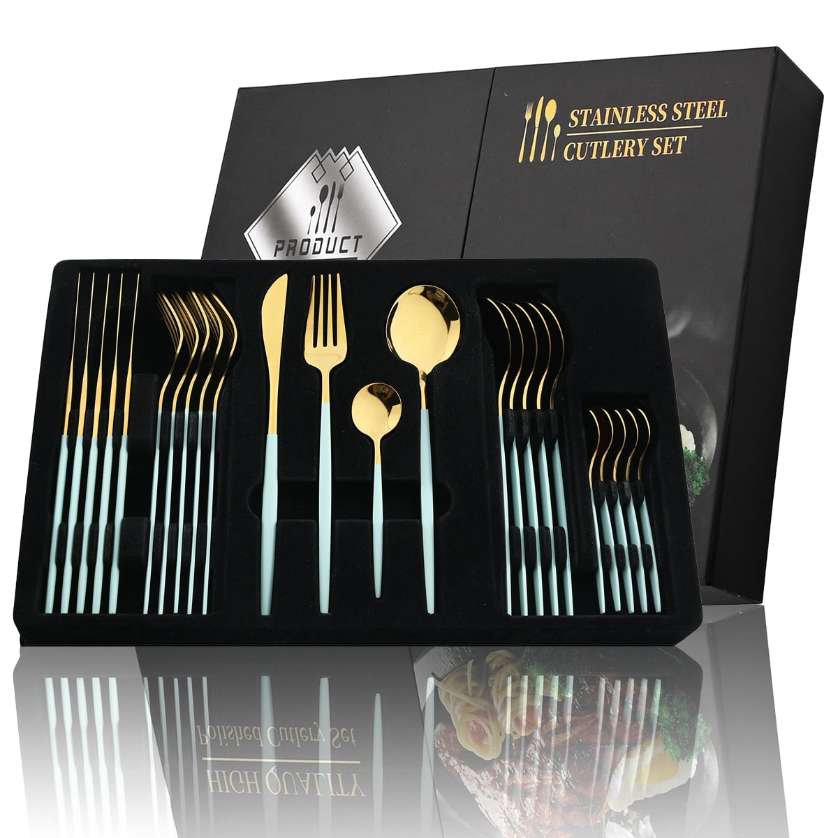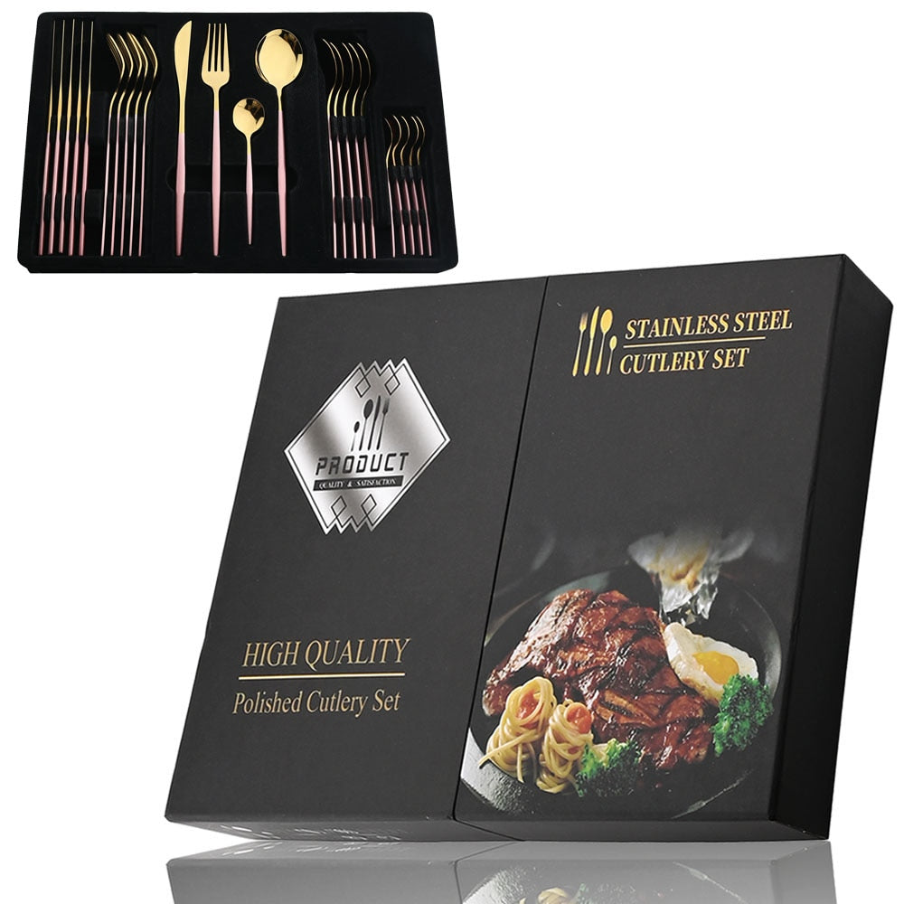 24Pcs Black Handle Golden Stainless Steel Cutlery Set