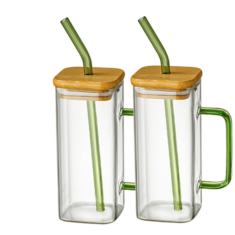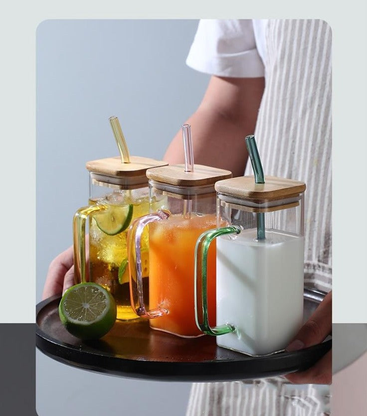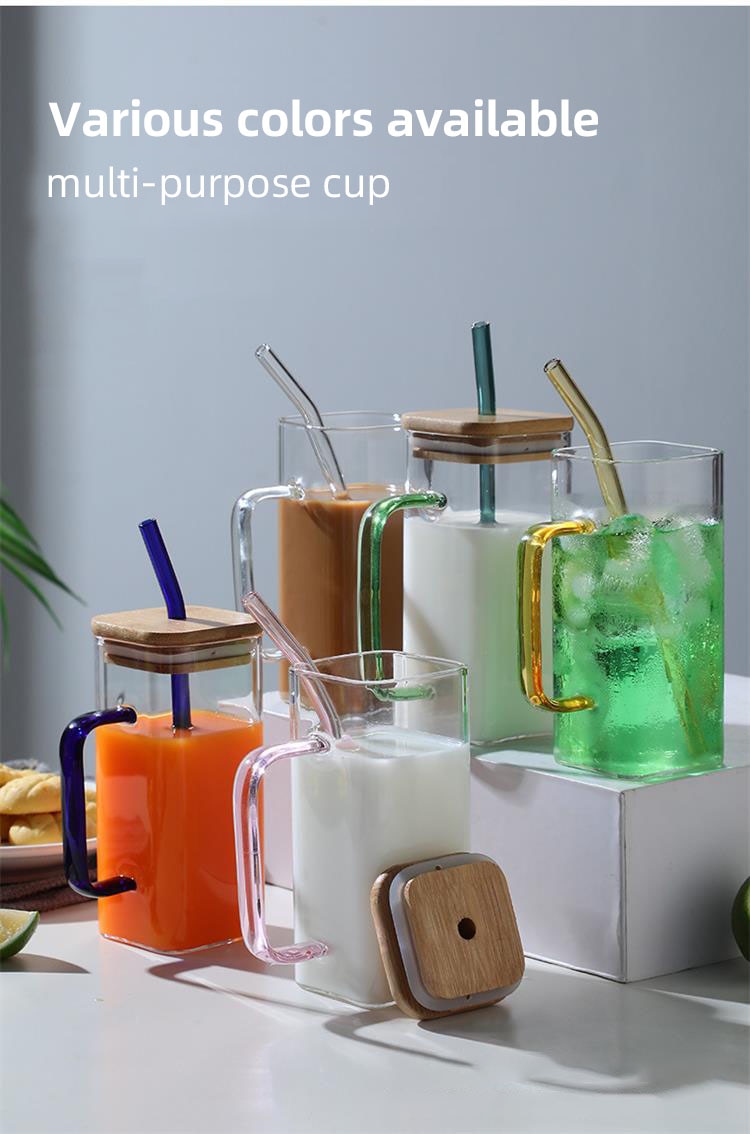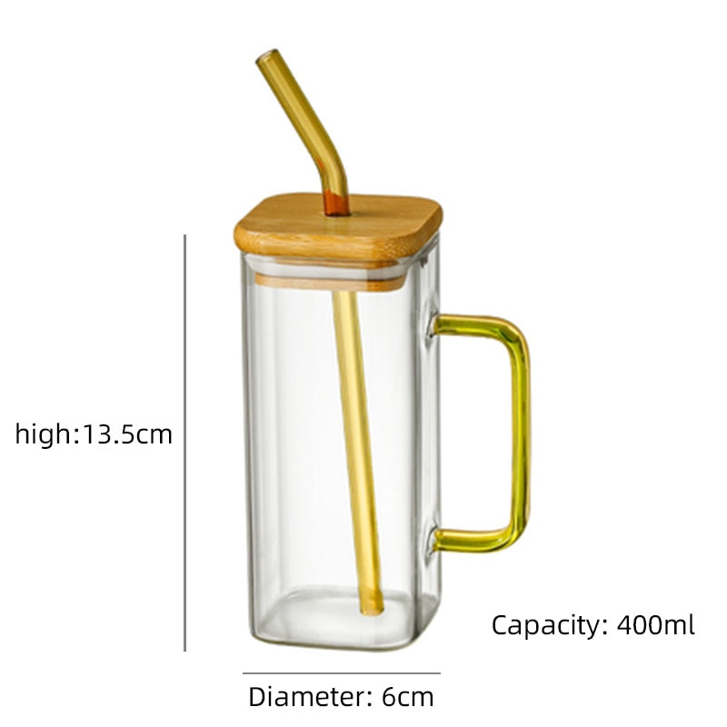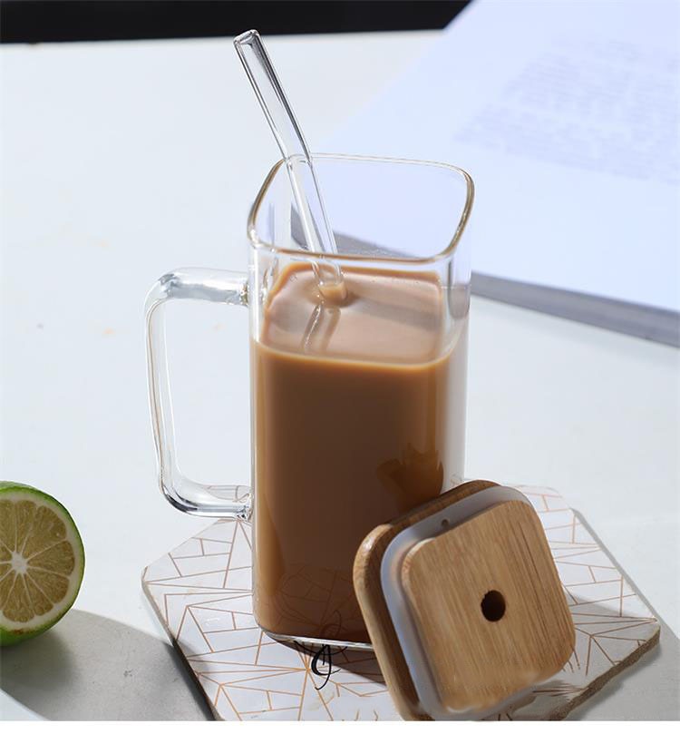 The Square mug with wood lids and straws is a great addition to any kitchen. Made of glass, this mug is transparent, so you can see all the delicious flavors your food has to offer. Plus, the comfortable handle makes it easy to use. Whether you're cooking up a storm or serving up a cozy cup of coffee, the Square mug with wood lids and straws will make your experience in the kitchen top-notch!