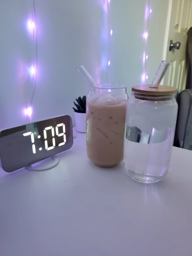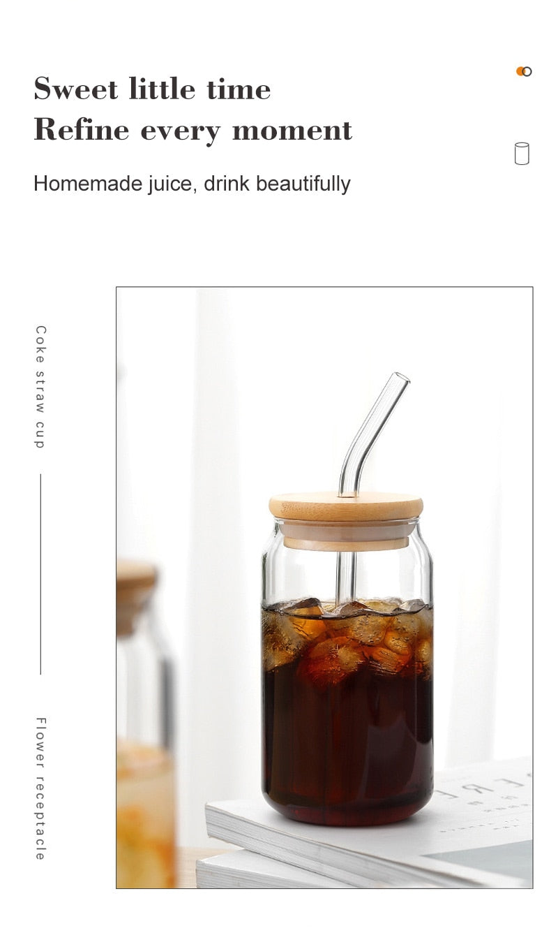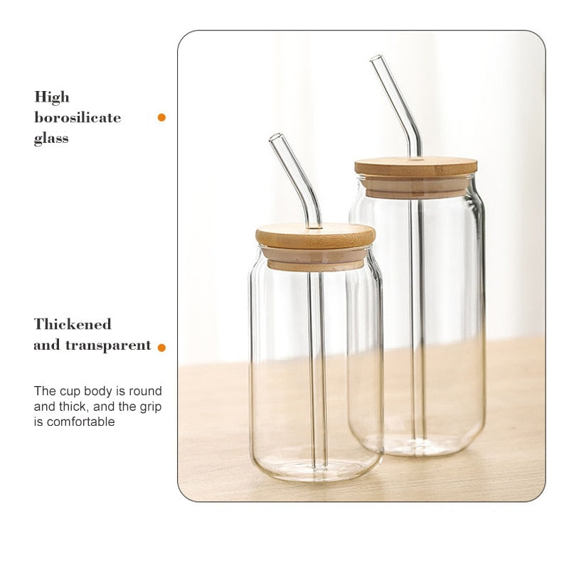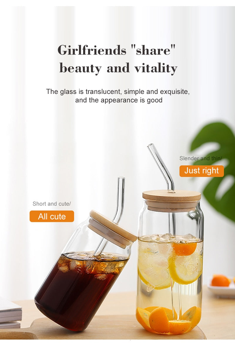 13/18oz Transparent Glass Cup With Lid and Straw